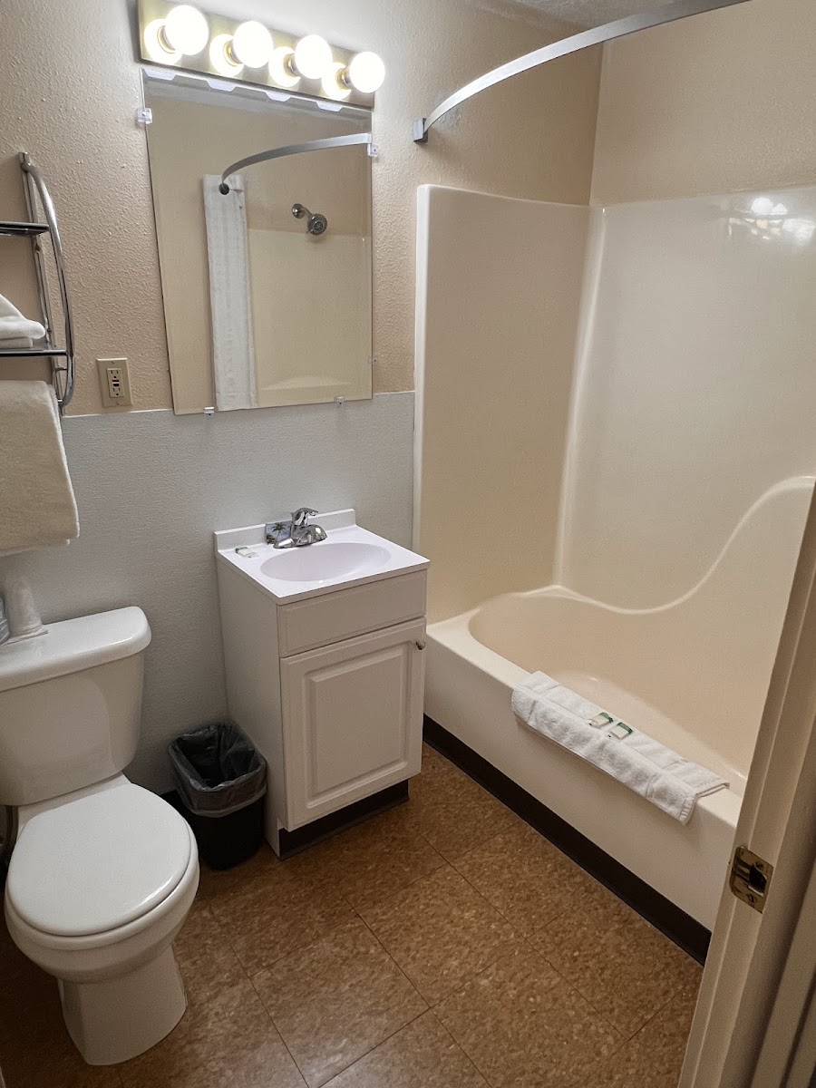 Solid small town motel. Was an event in town and we got the last room. Three beds, all reasonably comfy, fast friendly service. Semi outdated aesthetics but clean and comfy. The shower head is high up for tall people which I usually never see at older motels. Cleaning staff was super friendly. Thanks for a great stay.